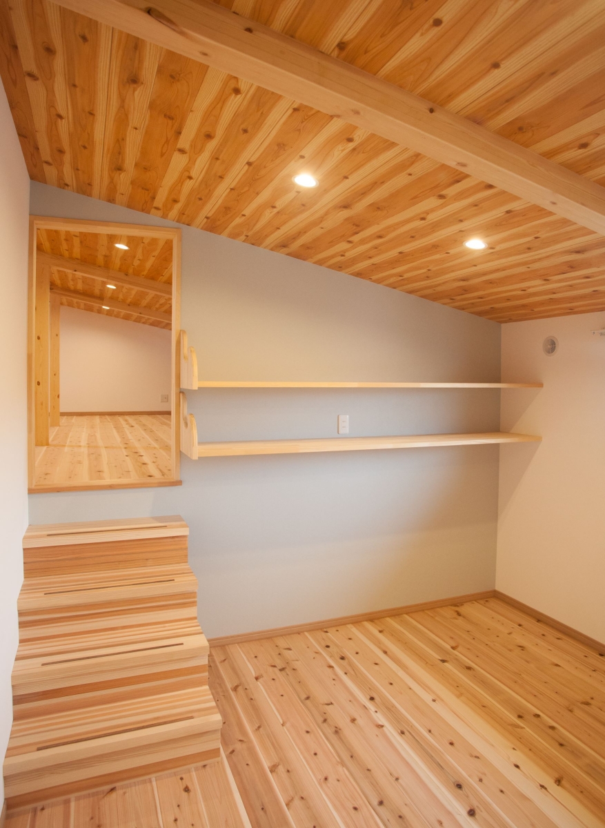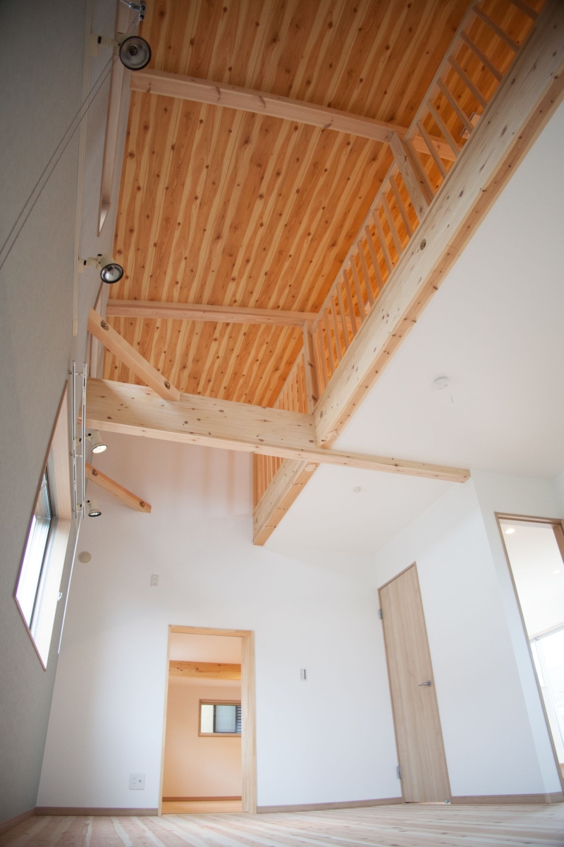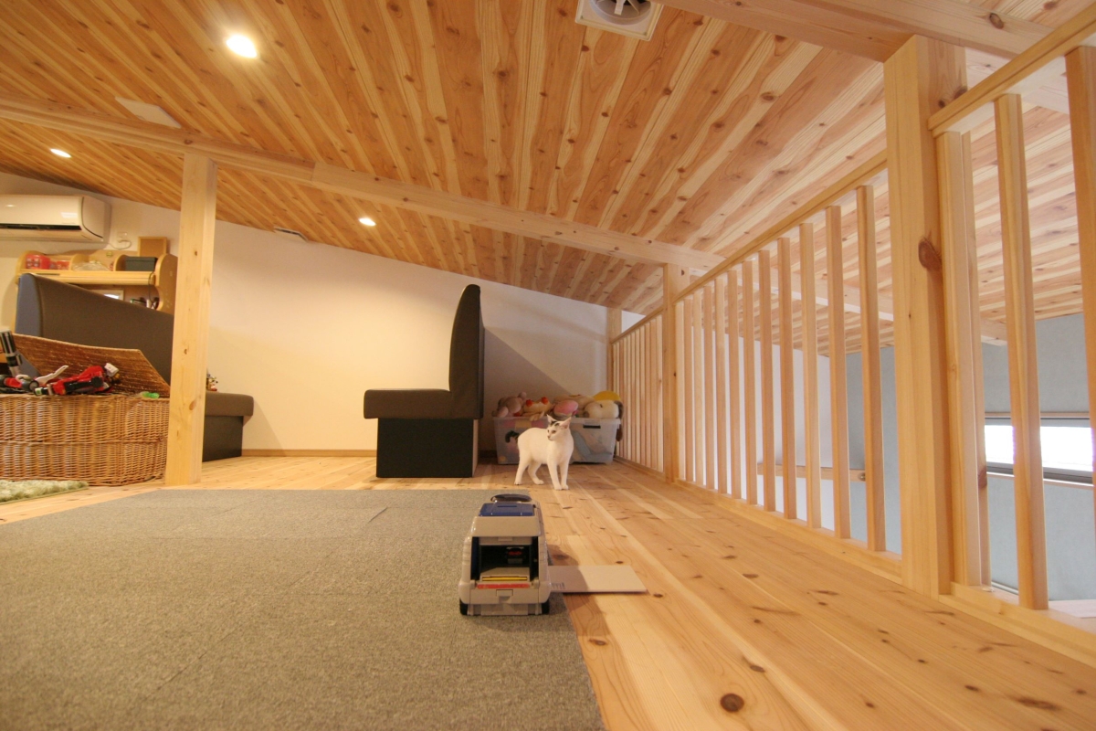 屋根裏部屋と子供部屋を吹き抜けで繋げることで開放感のある空間に仕上げました。
