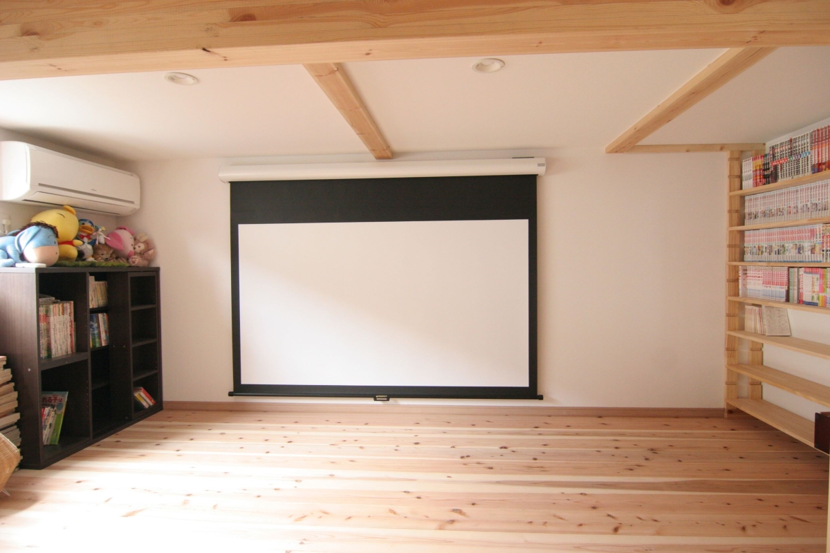 間取りには、少し遊び心を入れ、隠し扉を開いた先の中二階にはシアタールームが現れます。