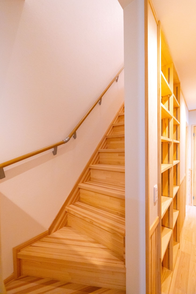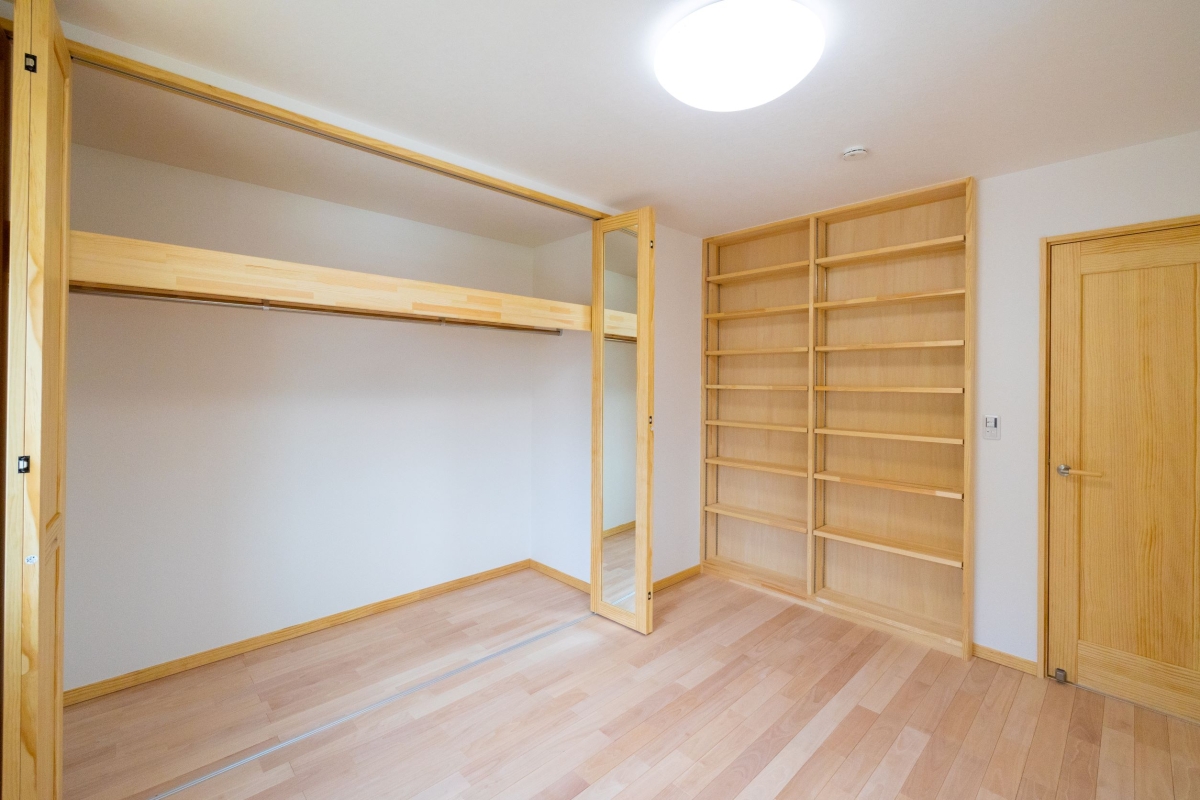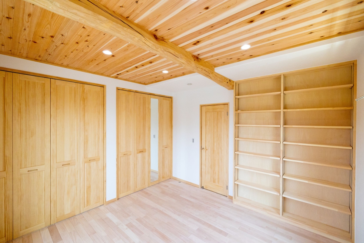 本を沢山お持ちということで書庫をつくるのはもとより、各部屋と廊下にも壁の空間を利用した本棚を作り付けでたくさん取り付けました。