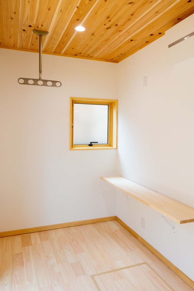 洗濯物は室内に干せるように、日当たりの良い4畳のランドリールームを洗面所横に配置しました。