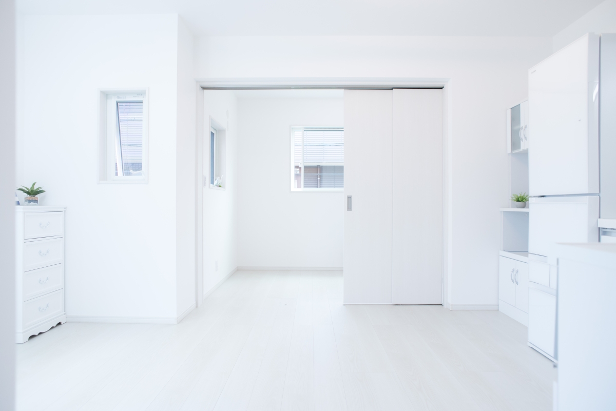 ひときわ目を引く南欧風の外観に対して、内観は白一色で統一されたシンプルな”ホワイトインテリア”。