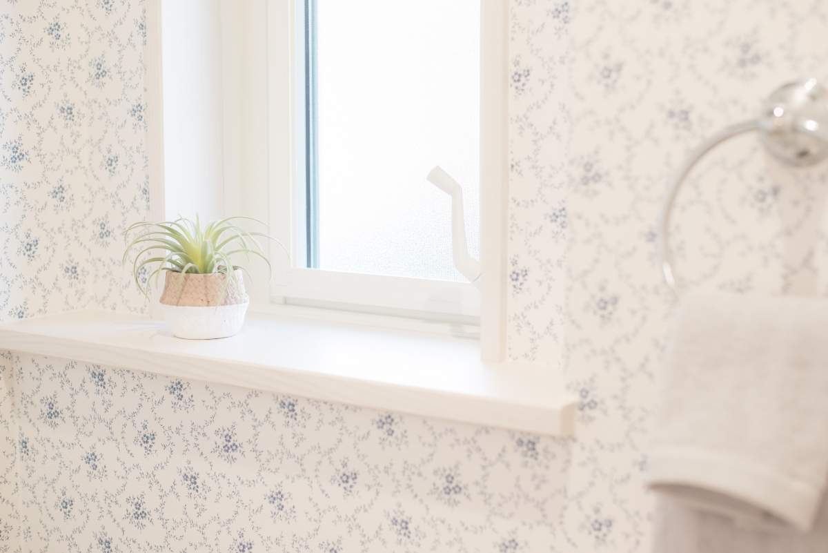 アクセントとなる色柄は、収納内部など極力隠れた箇所に。ホワイトを基調に、カーテンや小物類のコーディネートによって、住みながら色々な変化を楽しめる家です。