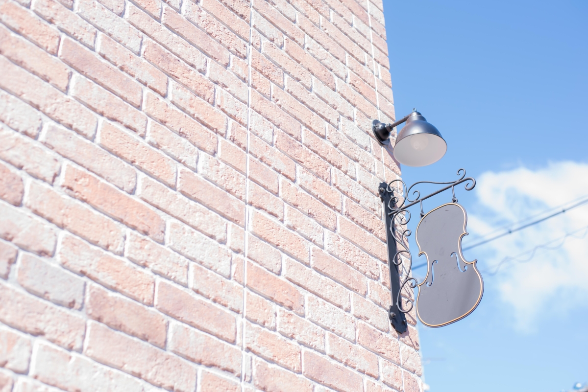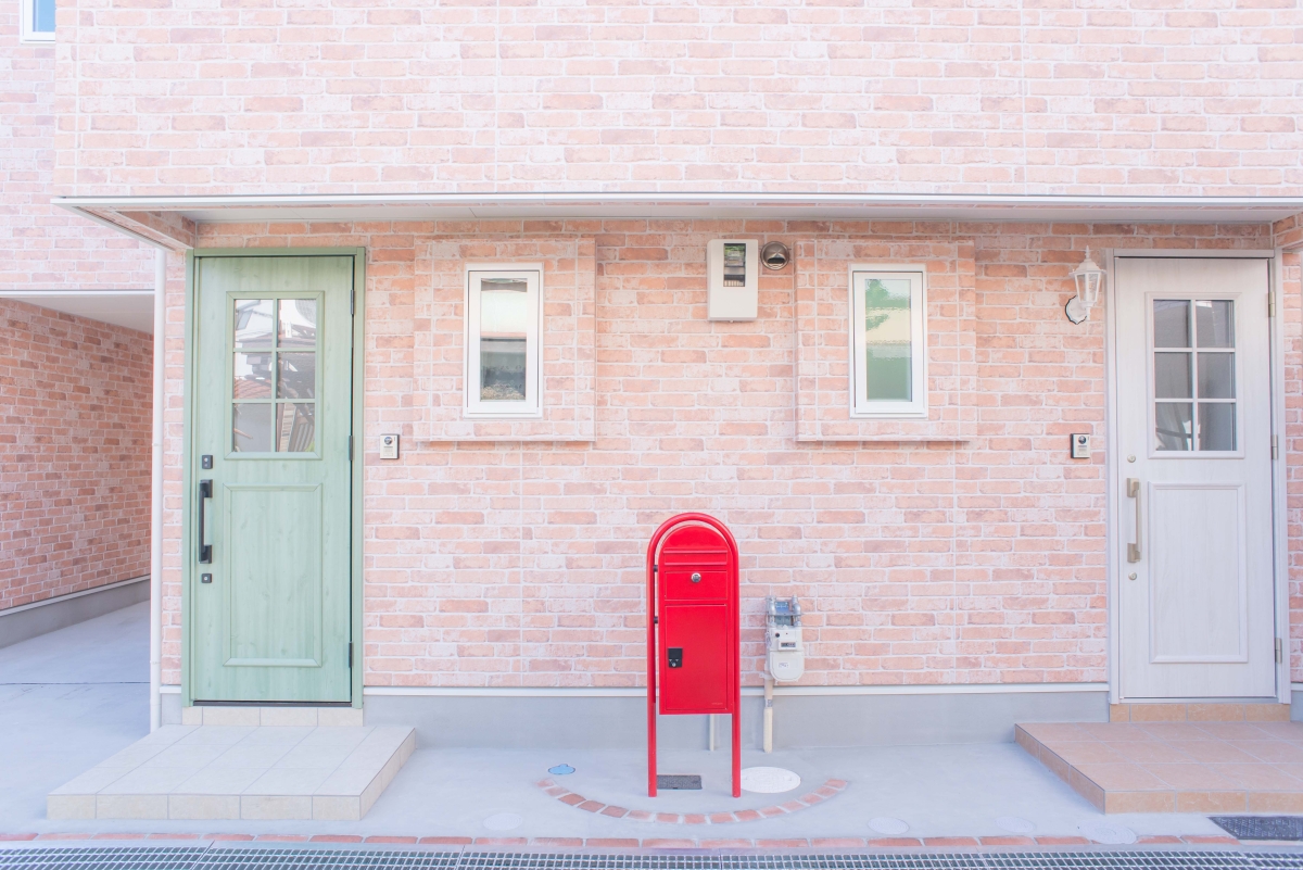 プライベートスペースのご自宅とパブリックスペースの教室、それぞれのエリアを住み分けるための玄関は2つ。生徒さんが一目で分かるよう教室はグリーンの玄関ドアに、そしてご自宅はホワイトに。レンガ調の淡いオレンジ色の建物に、エントランスが程よいアクセントカラーとなりました。