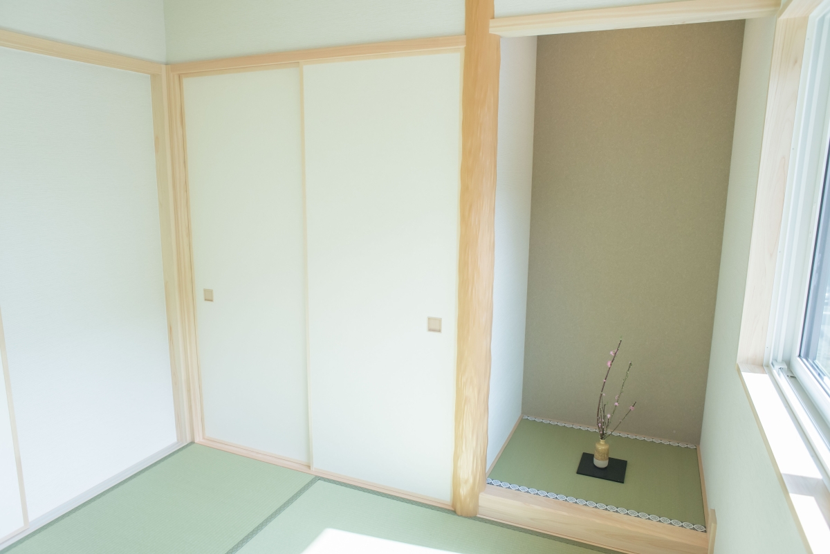 リビング横には、お茶を嗜まれるお施主様のご要望で畳の和室と床の間を設えました。