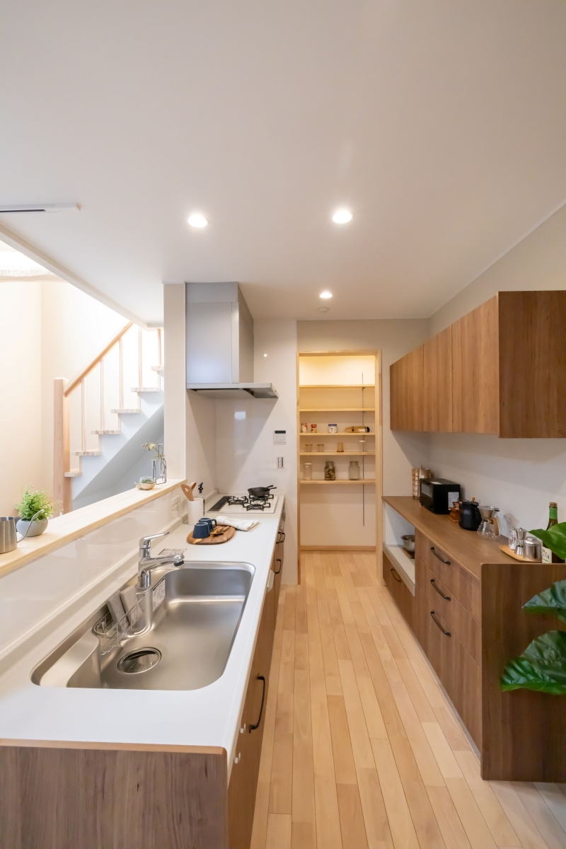 キッチン→洗面→ファミリークローゼットとスムーズにつながる家事動線で、洗濯や片付けも効率よく。