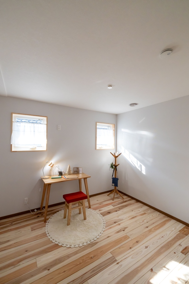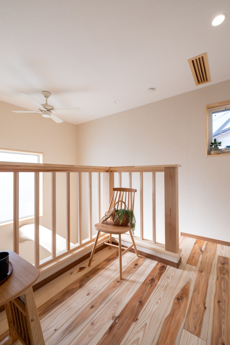 床には無塗装の杉フローリング。サラッとした肌触りで、冬でも素足が心地よく、木のぬくもりがじんわりと伝わります。